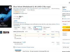 Danke Bernhard B., aber bei dem Preis pflege ich lieber mal weiter meine DVD von "Blue Velvet", denn hinsichtlich 4k blitzt noch zu viel Abzocke hinter, die ich hier nun nicht unterstützen möchte. Und so gesichert wie du sehe ich auch nicht, dass der Film nicht doch irgendwann wieder auf Blu-ray erscheinen wird.